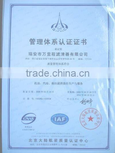 Ruian City Wanlicheng Filter Co., Ltd. specializes in producing engine oil machine of filtrating mainly, diesel oil filtrate, petrol filtrate machine and air filtrate machine. In the past ten years, with the support given by society, our enterprise developed rapidly. Now our company has become domestic well-known company of producing filtrate machine. Our filtrate machine sells well in national markets, and is also exported to Southeast Asia and American market, which has gained the domestic and international trader's favor.